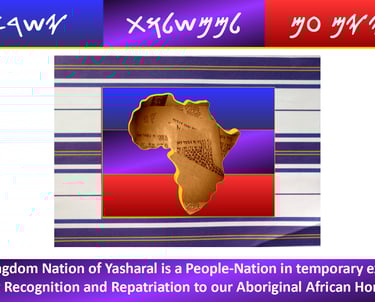 The People of he ancient African Kingdom Nation of Yasharal are still here, alive and well. Our POWER, AHAYAH AL ALAHEE YASHARAL, the Maker of Heaven and Earth, has awakened the people of Yasharal in these latter times and is calling us back to righteousness.